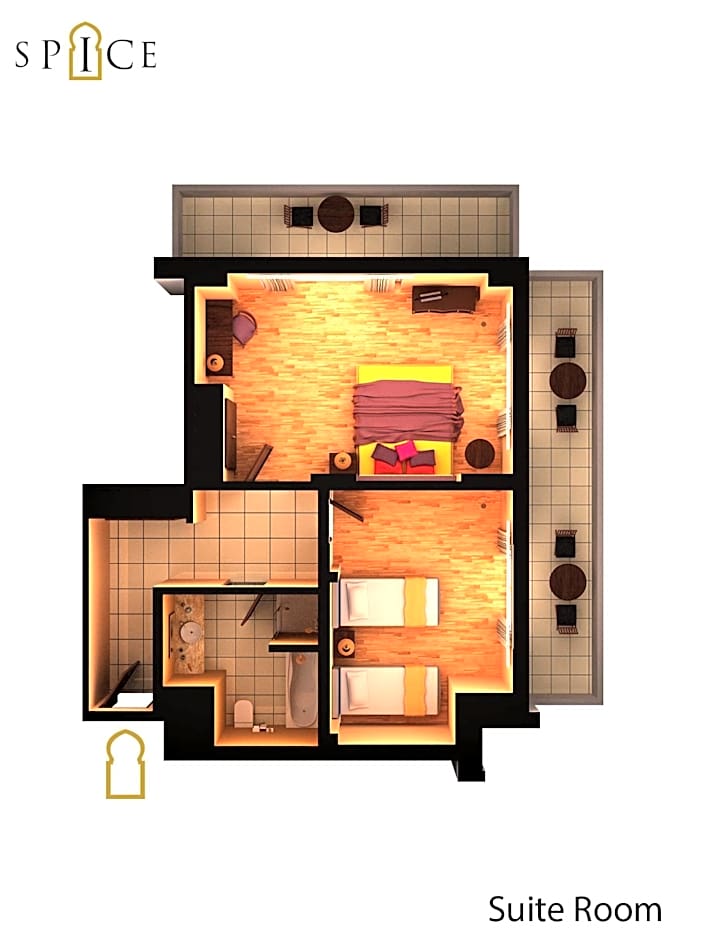 This unit is composed of 2 interconnecting rooms, and features 2 bathrooms and 2 balconies.